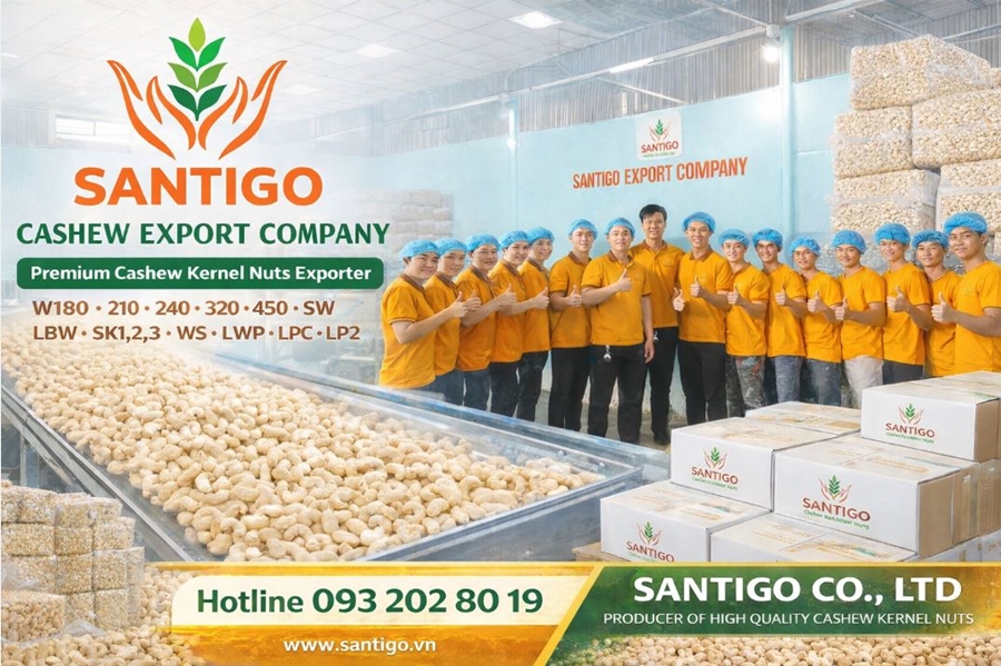 CÔNG TY TNHH SANTIGO (SANTIGO CO., LTD) là nhà sản xuất và xuất khẩu hạt điều uy tín tại Việt Nam, chuyên cung cấp các dòng hạt điều chất lượng cao cho thị trường Quốc tế.